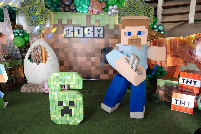 У програмі Майнкрафта діти будують власні бази, проходять битву з Крімером, крафтять продукти і видобувають ресурси, естафета на свині, тікають від павуків і зомбі, виконують місії на спритність і швидкість, стріляють з димової гармати і ловлять димові кільця, танцюють та експеримент із вогнем. Програма проводиться із елементами поролонового шоу.